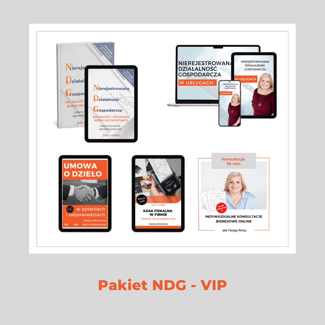 Poradnik ten zawiera najnowsze aktualizacje przepisów na tyczeń 2024r. oraz szczegółową interpretację ZUS-u dotyczącą świadczenia usług na działalności nierejestrowanej.